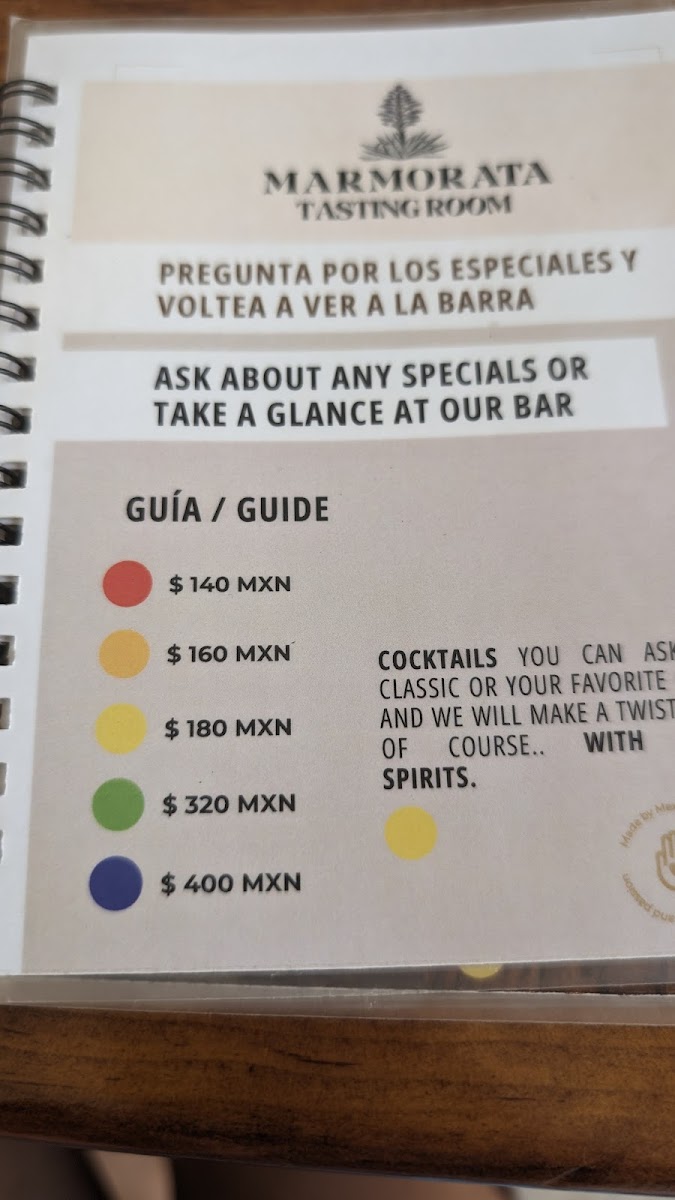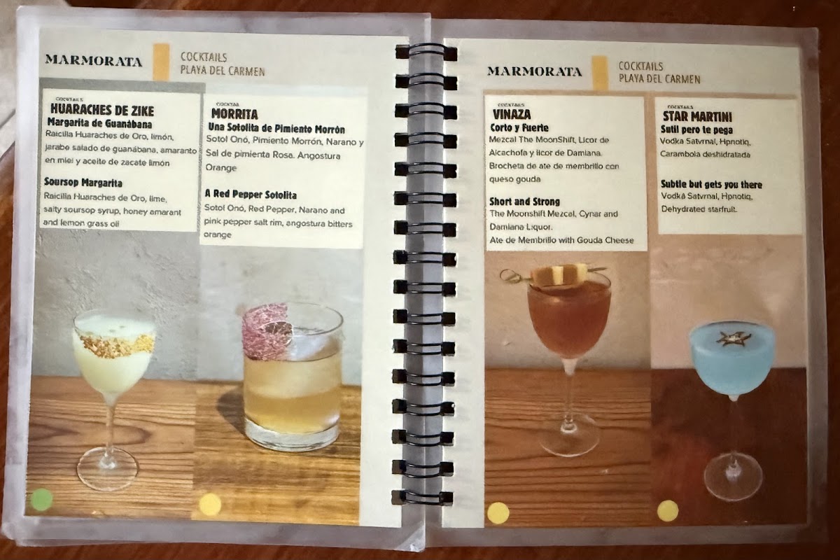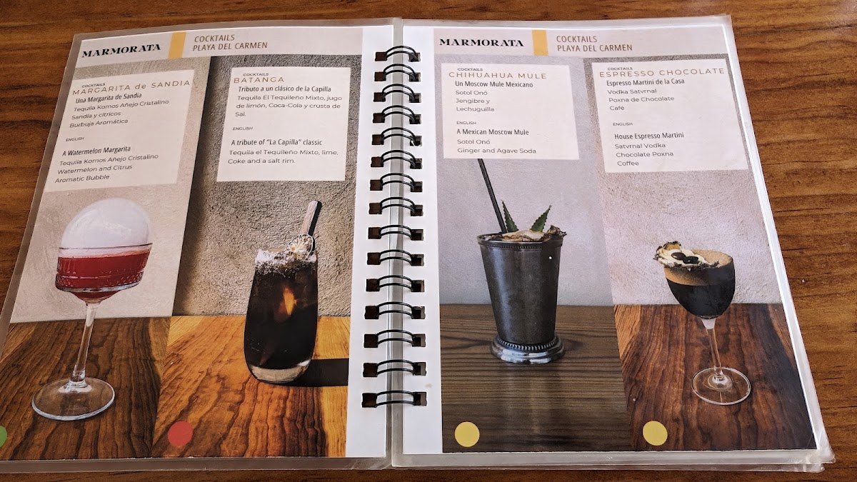 The menu at MARMORATA Tasting Room offers a refined selection of artisanal cocktails and carefully curated spirits, centered around high-quality tequila and mezcal. This is not a place for loud, over-the-top drinks but rather a thoughtful experience where each cocktail is crafted to highlight the unique flavors of the ingredients. Expect a small, focused menu that invites you to savor every sip in a relaxed, intimate setting.